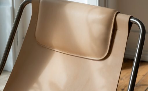 Cross-stitched Wood Chair is a design by Penelope Ann Ramos, a current design student at Pratt University. This design was inspired by creating a fabric design from wood. The design is made up of wooden slats which are then sewn together with a cross stitch pattern. The wooden slats are perfectly draped over the frame of the chair achieving a soft yet sturdy design.