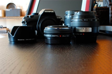 You can purchase the body for under $400 but beginners will probably want a starter package which includes the Zuiko Digital 14-42mm kit lens pictured below. Olympus was kind enough to send what I call the super duo; the 35mm macro and the tiny 25mm pancake lens along with the kit lens for testing.