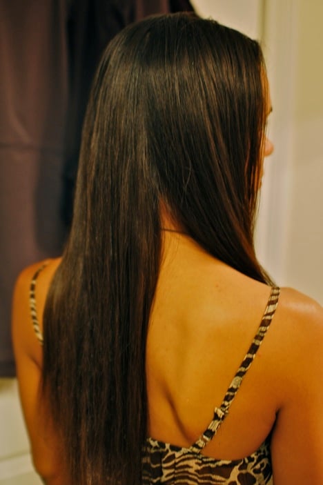 This iron is a dream to work with. It’s incredibly lightweight (thanks to ceramics) and heats up insanely fast (also thanks to ceramics). All I did to prep was brush Manaja’s hair and mist it with a heat protectant. As soon as I clamped the iron down on her hair, none of the sizzling or steaming prevalent in cheaper irons appeared. In under 20 minutes her thick hair was straightened. It would normally take her close to an hour with a regular iron. Her hair came out extremely silky and shiny and to her surprise and relief – no breakage.