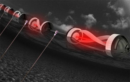The Wavelight concept coverts mechanical energy captured by ocean waves into electrical energy to illuminate a series of LED lamps. Each lamp is tethered to…