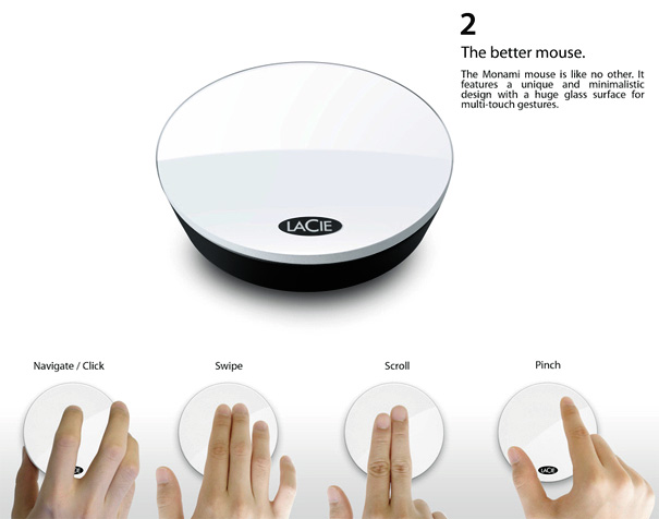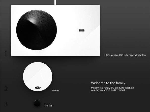 Allow me to introduce to you Monami, French for ‘my friend’; but here a project by the versatile Andrew Seunghyun Kim. The Monami set consists of Lacie’s pet: an external hard drive, an intuitive mouse and a mighty USB Stick…all packed into this desk-friendly device. The beauty about this project is that it’s quite do-able and simple. Jump ahead for the details.
