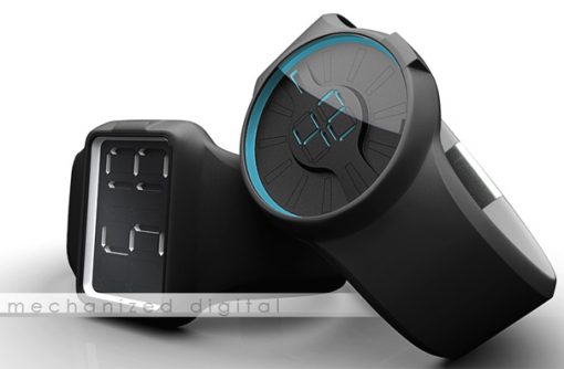 The Mechanized Digital Watch features a digital font but manipulates it to function as a “mechanized” number because the elements of each digit physically move…