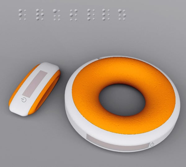 Tensio is an electronic blood pressure reading bracelet designed to keep tabs on your vital signs without appearing to be an medic-alert device. The core is cushioned with inflatable foam to take the reading and results appear on a display or through a tactile, braille surface. In case of emergencies, Tensio can wirelessly call for help.