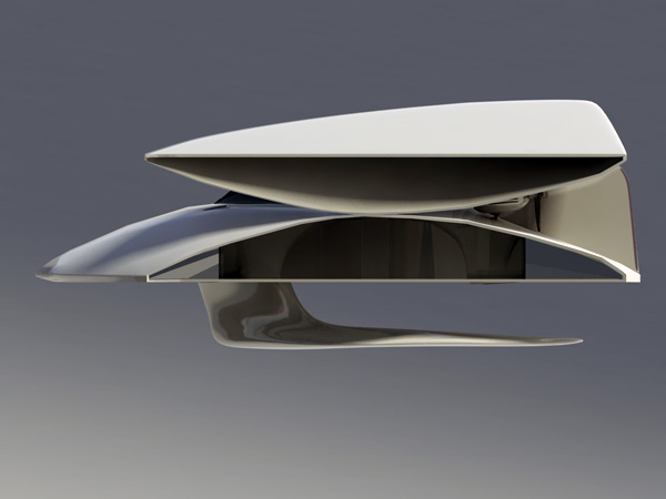 What a beaut! Aguila Design’s Xi yacht uses a remarkable series of aero and hydrodynamic qualities to maximize steering ability, maneuverability, payload, and of course… speed! Immediately apparent is the yacht’s unusual, spaceship-like, fluid shape- purely arisen from its functionality. The interior features unique, transformable spaces that are convertible at different levels to accommodate for varying numbers of crew and passengers as well as all the necessities for living a life of luxury at sea.
