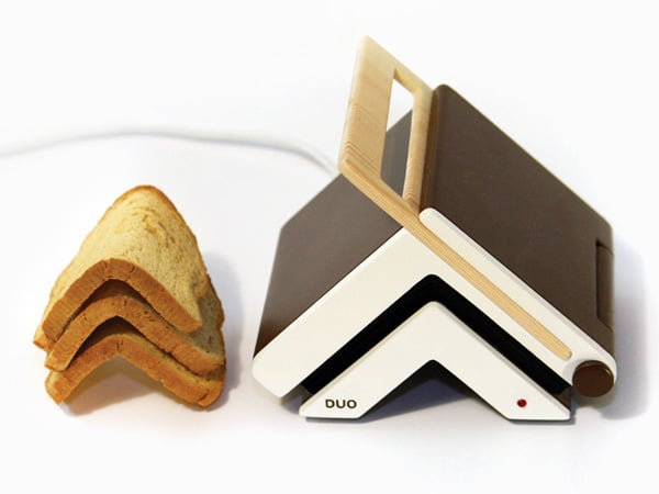 The Toaster & Knife is the combination of a toaster and Double bladed ‘Y shaped’ knife that have a definitive purpose. The bent shape of the toaster creates an iconic V shape toast and the Y shaped knife, solves the “double dipping” problem. Yes, one blade for the butter and the other for the jam! The center of the toast breaks easily into a sandwich, making your breakfast routine crispier!