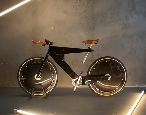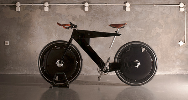 Nikos Manafis’ e-bike concept achieves its sharp, aerodynamic form through a manufacturing process that consists of folding sheets of aluminum around minimal, lightweight frame. But it’s an electric bike, so where is the motor?— Not one but two 250W in-wheel motors work either separately for extended range, or together for an extra boost of speed. Extras include a classic Brooks saddle and 3d printed lenses for LED tail lights! Watch the 360!