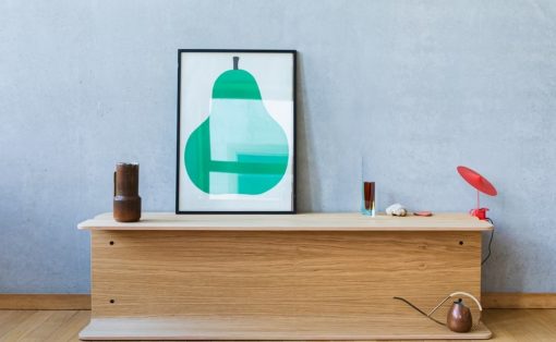 The Noma Shelf is a statement on habitual consumption, reminding us of the things we already own, while accommodating the new. Based on the traditional Japanese tokonoma, the shelf is sized for displaying small artistic objects. However, if you slide the shelf away from the wall, a stretchy lycra pouch is revealed for storing cherished items and trinkets. The pouch grows as items are added, so the form is completely dictated by the contents and quietly reminds us of our accumulation as it swells!