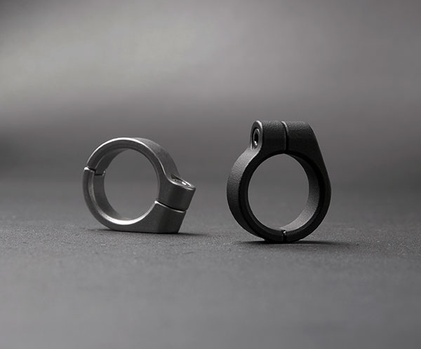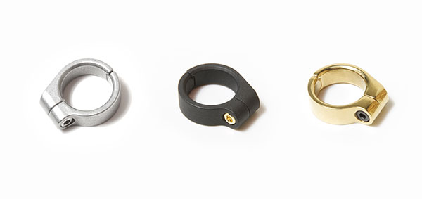 The Clamp Series of customizable rings by Drilling Lab translates factory aesthetic into fashion accessory! The designs are produced in a traditional Taiwan factory and stay true to the construction technique of the original hardware. The only difference is 3 fashionable finishes in matte black, gold, and silver. In two distinct designs, one with a visible screw and one without, you can mix, match, and size to your liking!