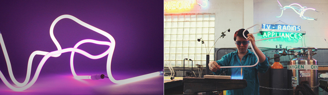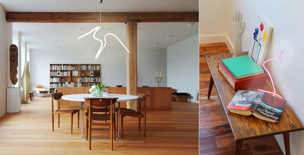 The Sparklet Series is a new approach to home lighting – neon! Neon, previously only used for advertising or in commercial art, makes a subtle, funny reference, seen over a dining room table, welcoming in the foyer, or at a bedside. According to designer Dayna Mailach, it shows that you don’t really care about wearing white after labor day or about what’s appropriate business casual attire! The design’s form is unexpected and spontaneous, and makes light feel fluid and interesting from all angles. As for its name and inspiration, the piece makes a reference to the image left in our minds when, as a kid, we played with sparklers during the summer. It gives a sense of familiarity and nostalgia, even without the awesome punchy colors of light. Not only that, but it lasts just as long as an LED!
