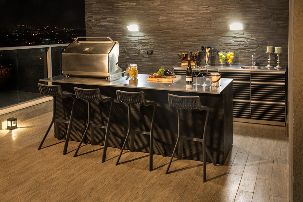 The Israel-based Segment development company combines aluminum with different materials to create a series of unique profiles that enable facade designs that are ever changing and fit perfectly to their client’s vision. One of the many advantages of the segment is the wide variety of profiles that can be used for varying applications. These aluminum profiles are very strong and durable and fit perfectly to withstand outdoor conditions in nearly any climate. As such, they are also great for wet areas and indoor applications. Ideal for use on outdoor kitchens and furniture, these pieces are constructed from modular bodies made of aluminum, 15mm in thickness, combined with other materials like wood, terrazzo, resista and more. Together they provide a strong, durable product that offers complete design freedom.
