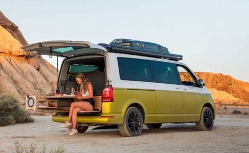 The design is a distillation of the perfect essence of Tron and Chevy in one machine! It features two capsules for riders in a Lightcycle-inspired position and a liquid, high-frequency rendered body shell which smoothly adjusts to steering movements of the front wheels. This high speed cruiser blends styling queues from a real-world Chevrolet Corvette with elements of the iconic Tron Lightcycles.