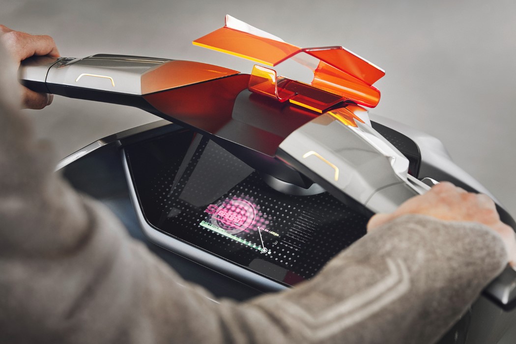 The Concept Link is envisioned to be a fully electric, zero-emissions ride and even features a reverse gear. The seats are adjustable length-wise and we can’t get enough of the way the below-seat storage opens up! What’s more, BMW plans to launch a range of connected clothing that are compatible with the Concept Link. A specific touch-gesture on the sleeve of the connected-jacket, for instance, opens and closes the bike’s sliding cargo door! I’m so excited for the future!