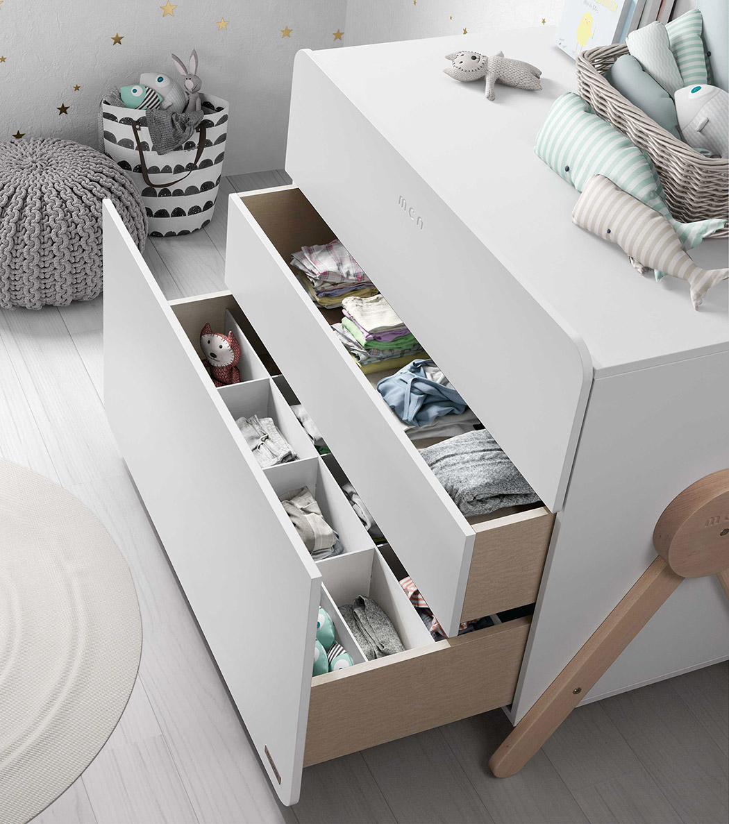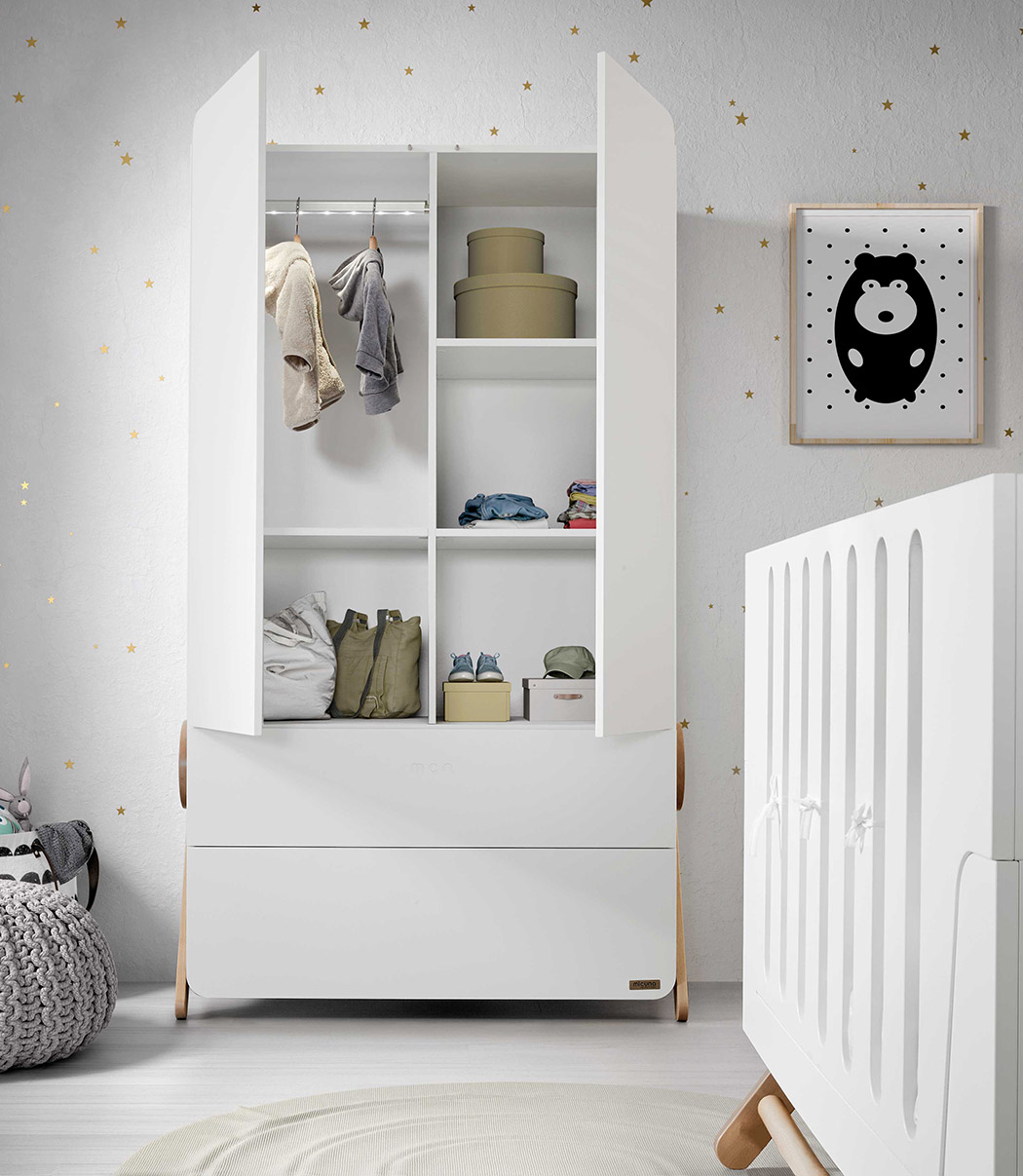 The latest in MICUNA’s lux line of playful children’s furniture, the Swing collection is a sophisticated set that looks right at home in any nursery or child’s room. The set of three consist of an armoire closet, dresser and crib. Though each piece is distinct in functionality, the collection becomes a cohesive unit through a common inverted V, solid wood support structure. The crib, however, is the only piece that is truly elevated and capable of swinging. Better yet, it can transform into a bed by removing the rails. This makes for a perfect transition for kids and extends the lifespan of the entire collection well into childhood.