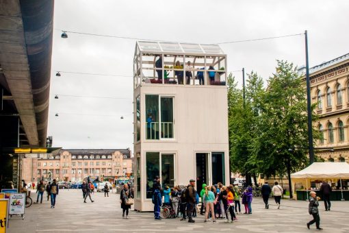 A rather bizarre experiment in minimal living, the Tikku is a full fledged home that fits into the space occupied by one car. Meaning ‘stick’…