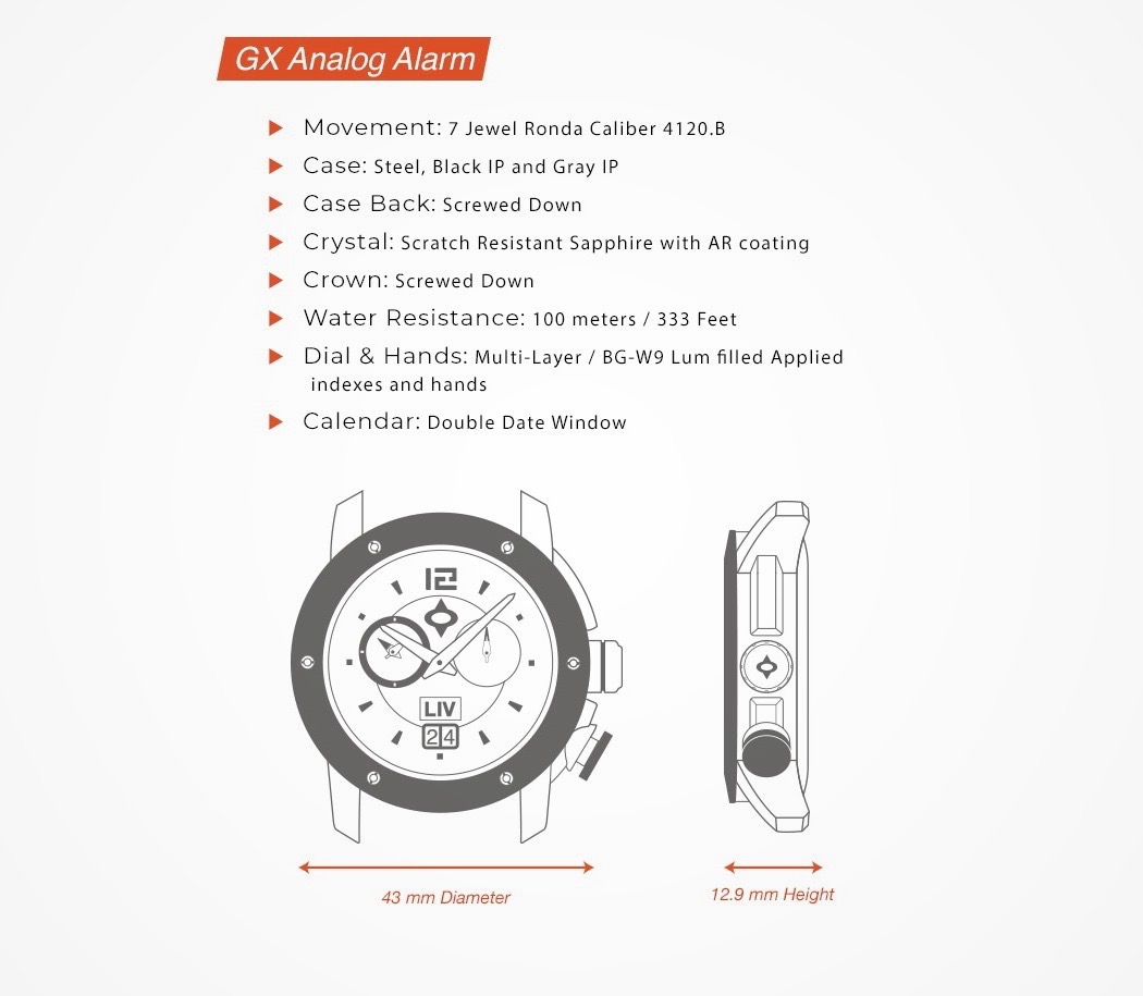 The GX Alarm follows the aesthetic of the Genesis, with a knurl-pattern bezel, but comes with a Ronda startech Caliber 4120.B movement with a battery life of 50 months. Built with everything you’d need in a swiss watch, the GX Alarm comes with 100m water resistance, and of course, an Alarm function, for the die-hard fans who LIV so dedicatedly listens to.