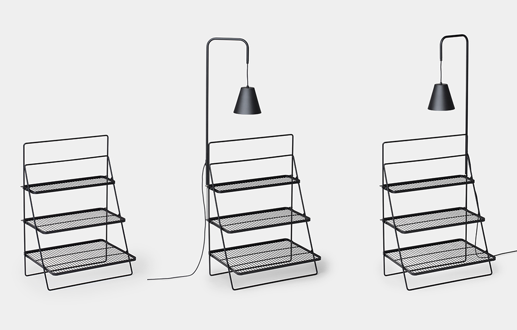 The Green Ladder is a three-tiered pot stand and it can be attached to the Green Light by stringing it to the fastening supports.