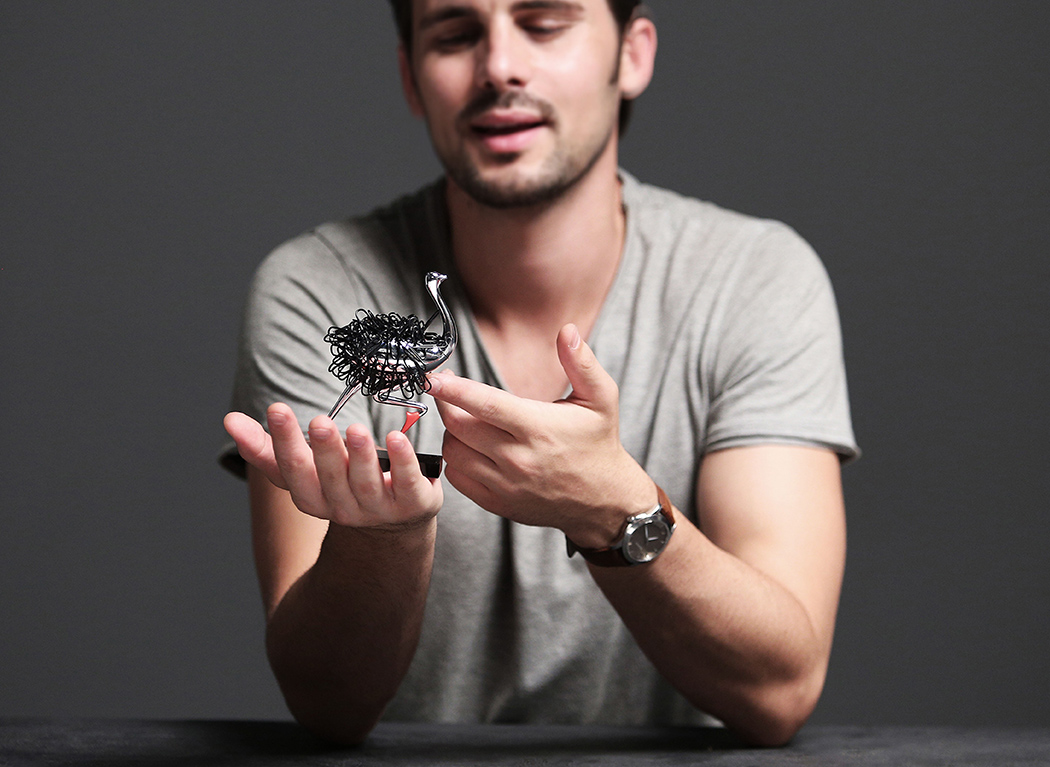 Introducing, Ostrich! Never before has a paperclip holder been so awesome. The magnetic silhouette takes on the familiar form of the world’s biggest bird. Beautiful on its own, the shiny metallic finish and funky red “sneakers” make it an interesting desktop ornament. Add on the included black paperclips, however, and you’ve got something entirely new! If I had this functional decor on my desk, I doubt I’d get anything done. DO want!