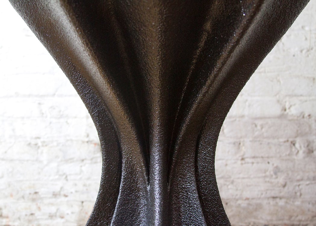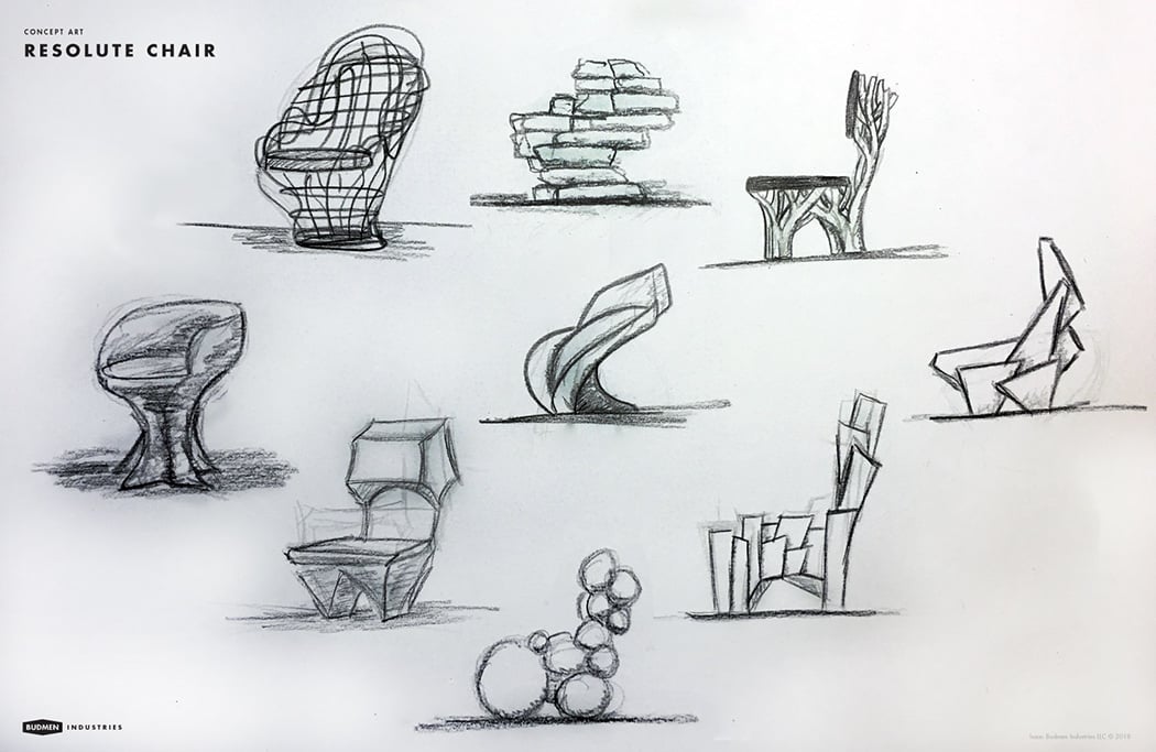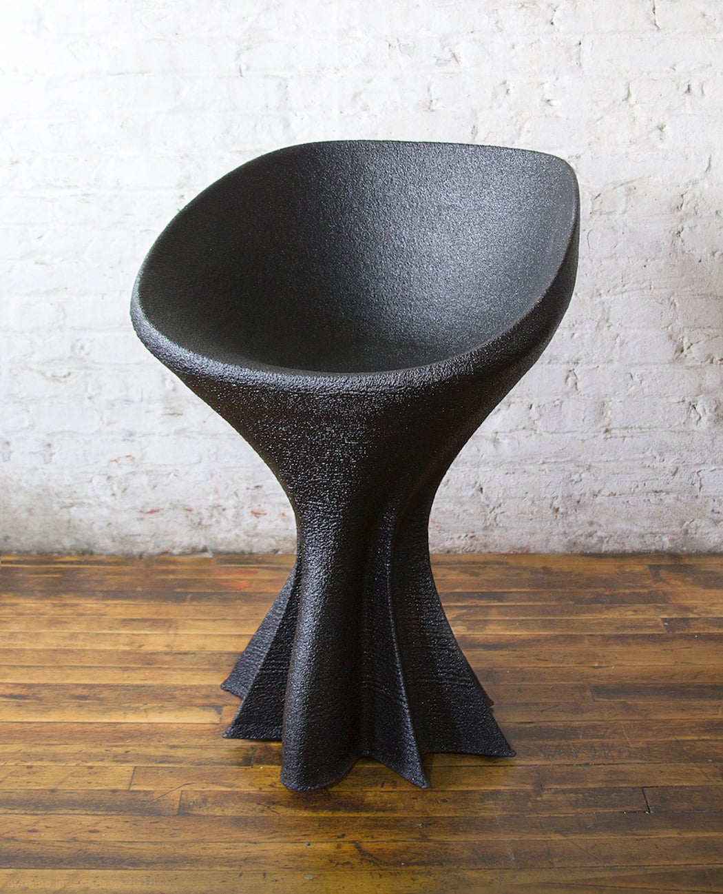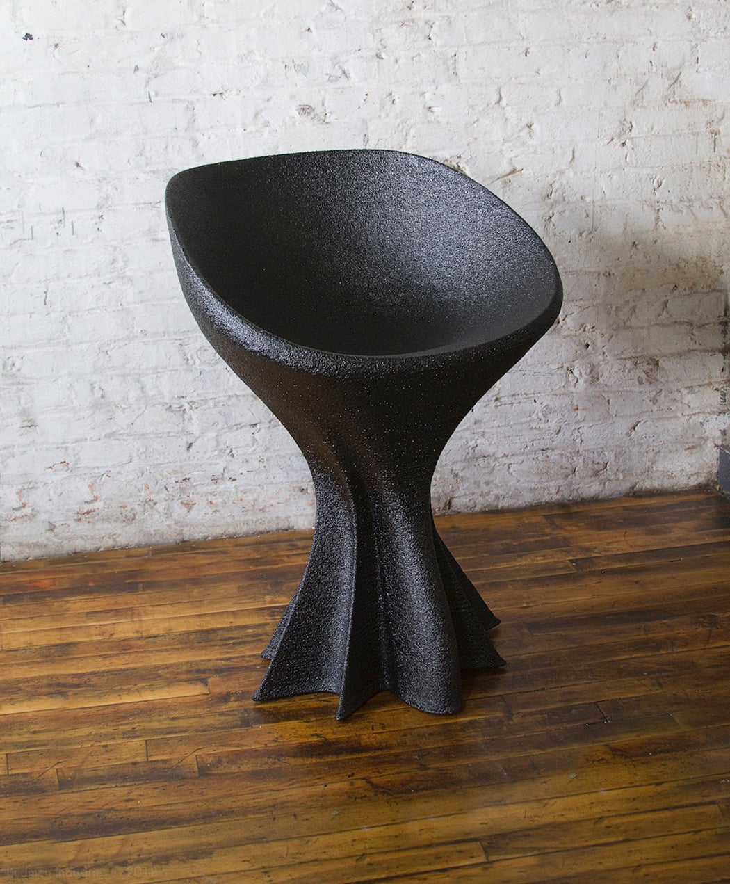 Developed using CAD software, the Resolute chair is adapted for aesthetics yet sturdy enough to support a person weighing more than 250 lbs. Modern in composition yet organic in shape, the design is coated with structural resin for enhanced support and surface durability. This also gives it the stealthy black finish that adds to its liquid-like look.