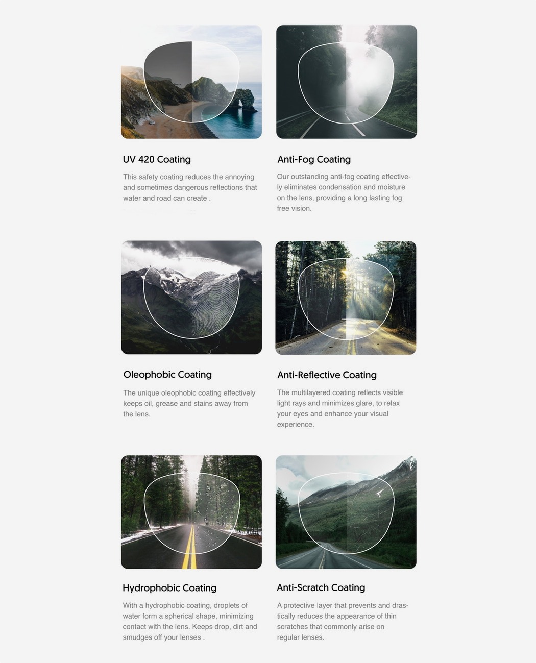 The main source of HEV light in our lives is the harmful blue-violet light emitted by our digital screens. Lance 2.0 gives you the option of The Sharp® Lenses. These are the most evolved digital life lenses and the nanotechnology coatings act as a shield against blue light from your daily exposure to screens.