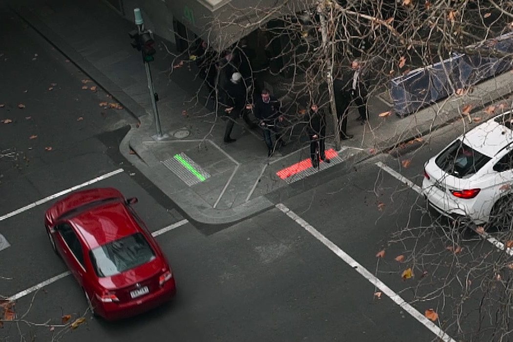 Büro North created a Smart Tactile Paving system that can be placed over the sidewalk so those looking down at their phone can be made aware of when it’s safe to cross.