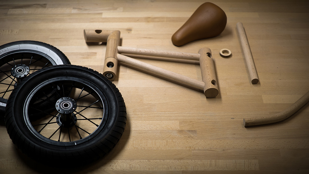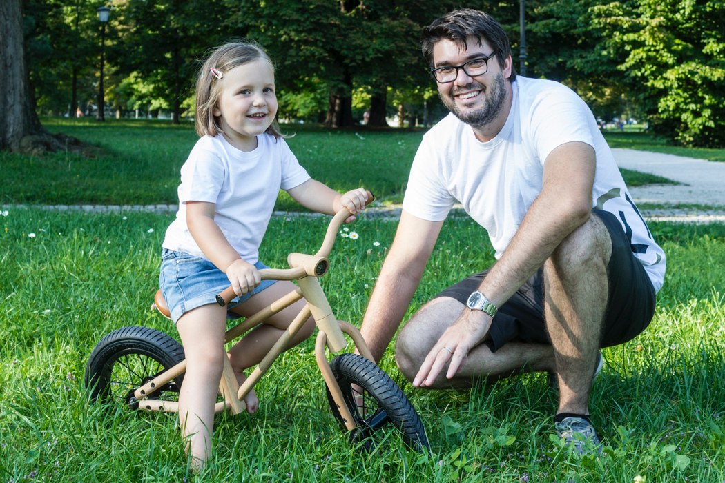 Andrej Kregar got the idea of creating a wooden balance bike when his daughter celebrated her 1st birthday. He listened to his daughter’s wish to have a balance bike that looks like a real bike because children want to have copies of the things their parents have.