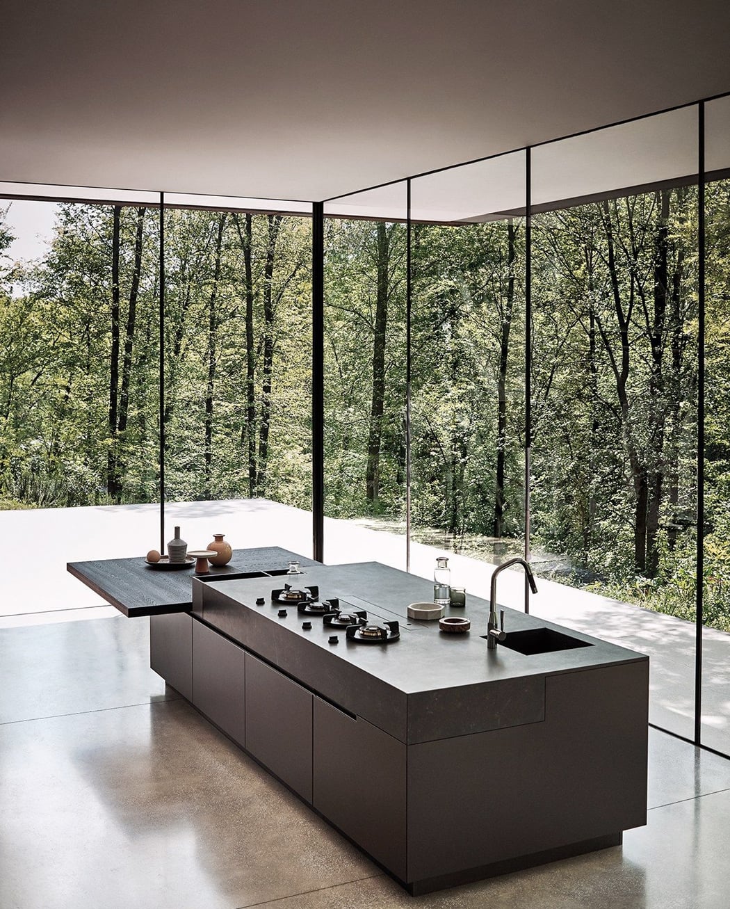 Surrounded by floor-to-ceiling windows, this kitchen design by R&D Cesar helps you reconnect with nature while you cook away. Prepping your meals has never been so relaxing!