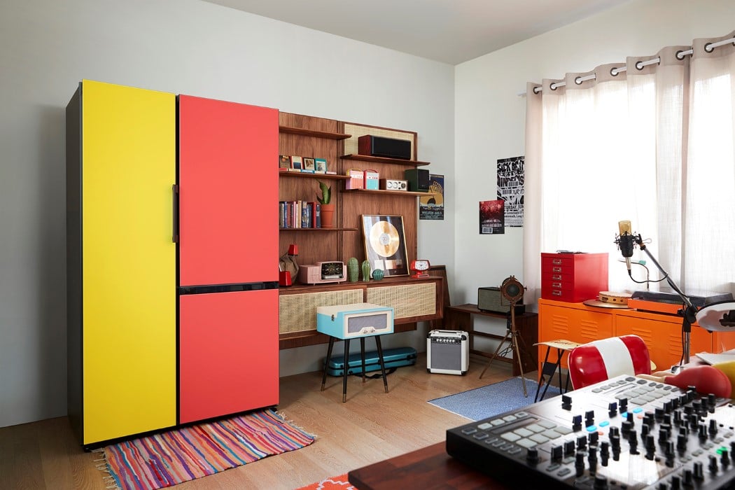 The award-winning Bespoke fridge series from Samsung does for refrigerators what the Serif TV hoped at doing for televisions. Its minimalist, Scandinavian-inspired surfacing with the use of home-friendly colors makes the fridge easily blend into spaces as a part of decor, rather than a consumer appliance. You could either opt for complementary colors so the fridge integrates into your home decor, or opt for a vibrant color combination to make the fridge look like an abstract, Piet Mondrian-inspired piece of art!
