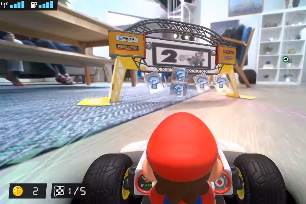 Bring the game environment to the real-world in a mixed reality experience which sees you and your pals racing for supremacy in the cozy confines of your home this Holiday Season. Yes, that’s true as you can turn your living room into a race track for the most exciting entertainment because binge-watching Netflix is so mainstream! Nintendo calls it Mario Kart Live: Home Circuit which fuses classic kart racing in the real-world with an augmented reality environment. It is actually a two-part acquisition – one you have to download the game from Nintendo Switch eShop which solves the gaming interface bit, and the other a $99.99 RC kart (with either Mario or Luigi) and a stack of 4 cardboard gates which shape the racing track in any space inside your home. These cardboards are the checkpoints for the race circuit and the kart needs to pass through them, till the last one to register a complete lap. The track’s turns and straights are left to your creative building – using things like sofas, tables, kids’ toys, or coffee cups for instance to craft the race track in a space as small as 15 x 15 feet!