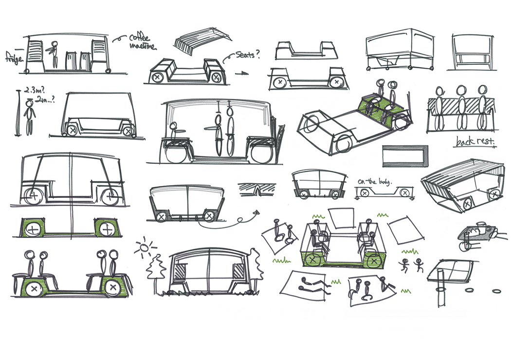 Each truck in Lee’s design comes in two modules: the top part of the truck is meant for cooking and the bottom quarter of the truck detaches and forms the seating area. As designed right now, Lee incorporates foldable support pillars on the bottom of the electric truck design so that once the seating module is pulled out, the kitchen can stand even and elevated on rolling posts. Food trucks are a reasonable solution to the problems that restaurant owners face in the age of COVID-19 and, if you live in a city, chances are you’ve probably already seen a lot more of them dotting the streets in the past couple of months.