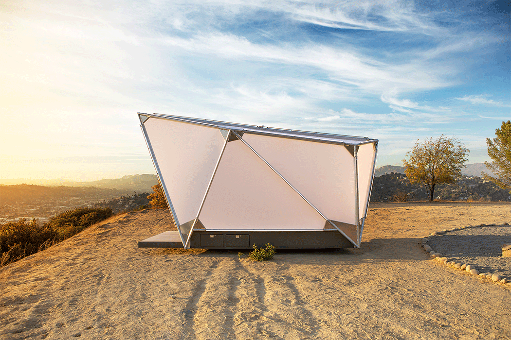 Jupe is a portable off-grid shelter that flatpacks so you can pick any spot on the planet and pitch your tent. The futuristic silhouette is inspired by Stanley Kubrick’s 2001: Space Odyssey which explains the aluminum pole frame and glowing Firesist fabric exterior which also make it suitable to withstand different climate conditions. The mission was not to make a quick place to stay but to create a gateway to the outside world. It can be assembled in hours and gives you a 111-square foot space featuring tall ceilings, finished Baltic birch wood floors, a queen bed, and a storage area – think something right in the middle of a tiny home and glamping pod.