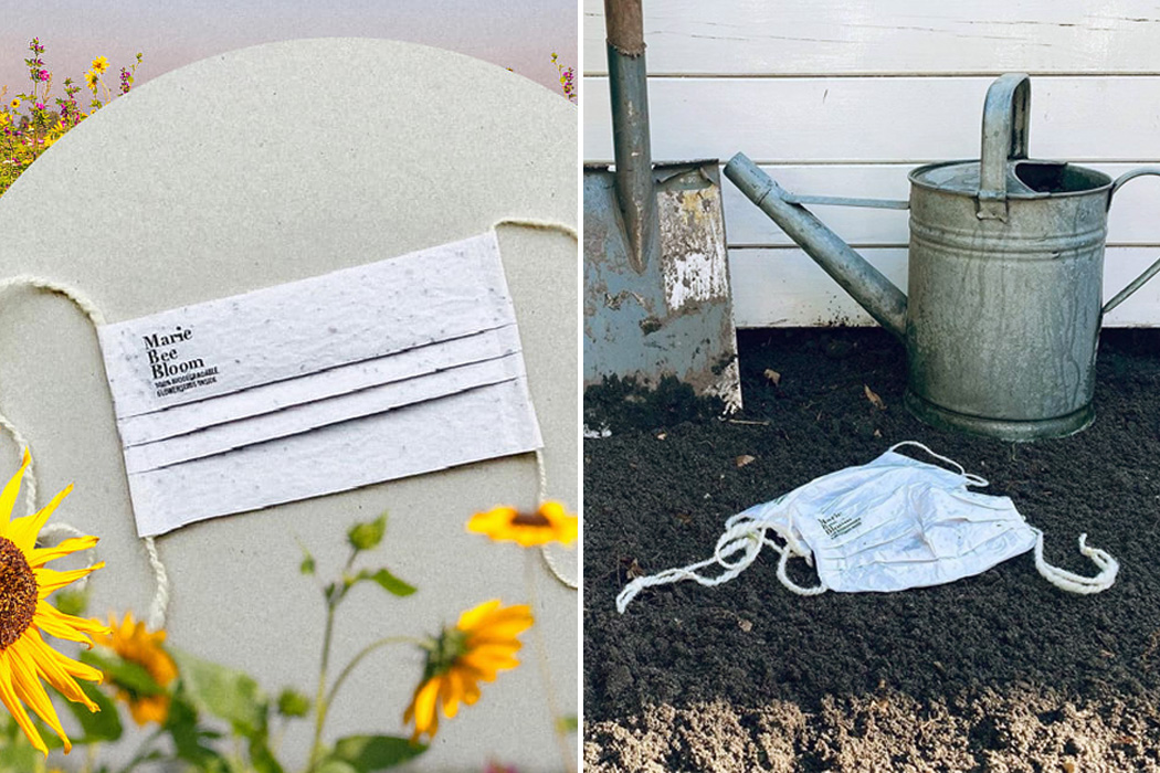 Marianne de Groot-Pons, a graphic designer, based in the Netherlands, started Marie Bee Bloom, a biodegradable face mask company, to give back to the earth after noticing all of the blue disposable face masks littered in the street corners and leaf piles. Marie Bee Bloom face masks are made from rice paper in a Dutch sheltered workshop and are filled with a mix of Dutch meadow flower seeds. Since the masks from Marie Bee Bloom are biodegradable, they can be buried in the ground once they’ve been used, then the flower seeds encased inside each mask will have their chance to sprout and bloom. De Groot-Pons’s hope in designing Marie Bee Bloom masks is that they’ll grow into plant life and flowers to help cultivate the earth and nourish the bees that call it home.