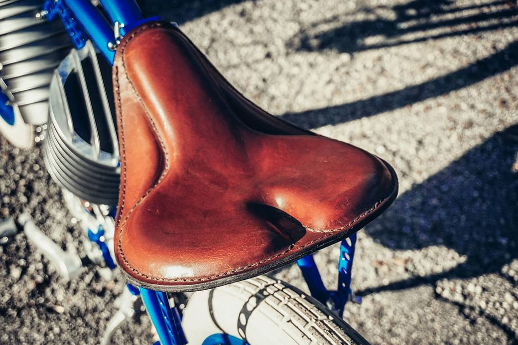 The custom build doesn’t end there as the racer gets a nostalgic number plate, a tank sandwiched between the bike frame’s dual top tubes and a braced tractor-like seating embellished in brown leather. Elettracker also gets bronze inverted bar-end levers having hand-wrapped leather grips. For the wheels, GDesign managed to emulate the retro white tire look with the thin spoke wheels. To complement the retro custom build, the custom builder got the faux-painted race livery done by Arinna Crippa of Lake Design. The custom bike, in a way, traverses one to the time when anything racing on wheels was purely magical – both for the racers and the fans.