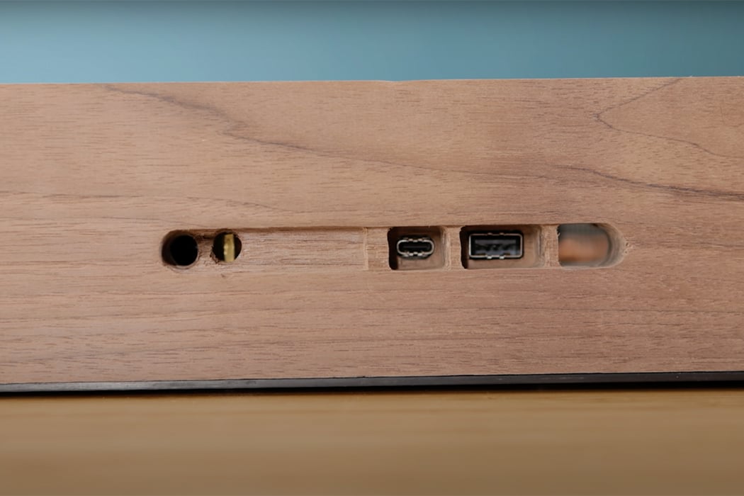 With the rear side of the case still exposed, DIY Perks uses a CNC router to carve port slits that work as vents for the system to remain cool. Finally, DIY Perks looks to carbon fiber once more for the case’s lid, where he relies on CNC milling to carve a vent for the fan out of miniature hexagon shapes, marrying them to the walnut frame with matching hexagonal wooden inserts. The refined walnut look of the case is certainly a step away from the original metallic and custom brass casing for the PS5. Understated and sophisticated, the new case from DIY Perks doesn’t demand your attention like the original shiny metallic case, but the rustic elegance of the walnut wood blended with the durability of carbon fiber definitely keeps it.
