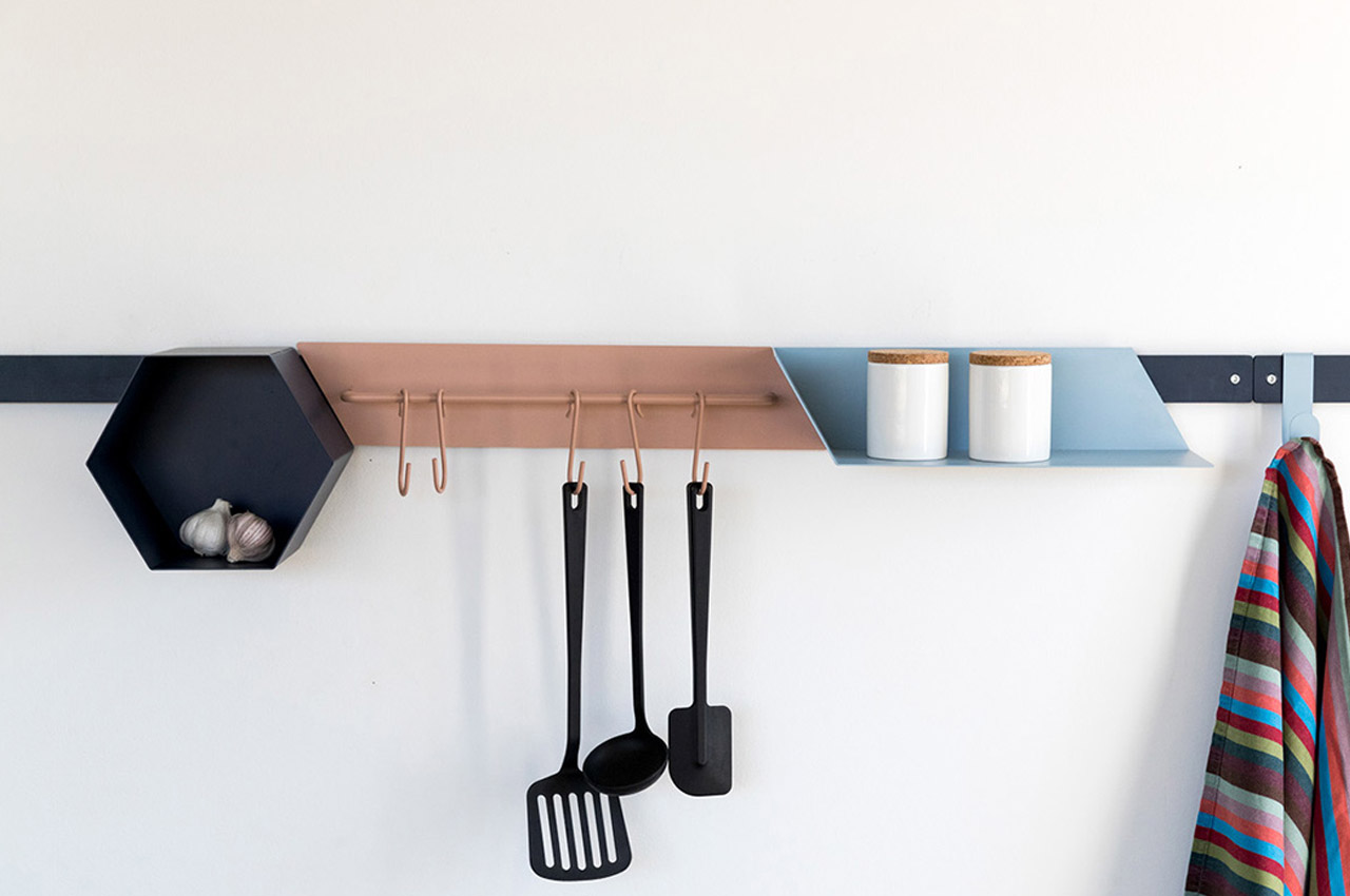 Designed for Hans Thyge and Co, Hexagon is a modular shelving unit inspired by one of my favorite geometric shapes, you guessed it…the Hexagon! Hexagon is a system of organizers that is mounted upon a magnetic rail. Created entirely from metal and accompanied by multiple organizers in various shapes and colors, the layout can be customized according to your personal preference and wherever you decide to position it! Placed in the kitchen, it becomes a perfect vestibule for kitchen storage. The hooks can be used for holding dish towels and spatulas, whereas the magnetized panels can be used for storing knives.