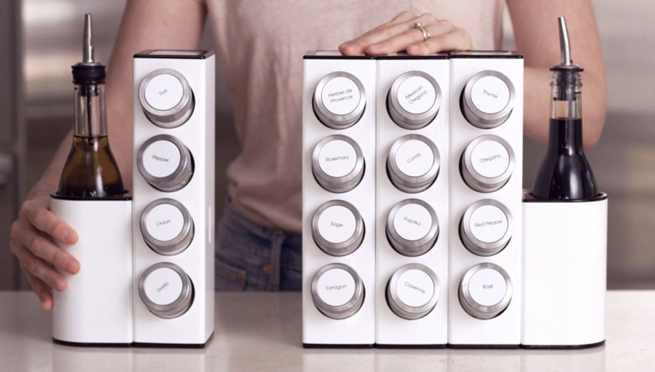 Meet the Chef Caddy. It is to a chef what a well-organized CD rack is to a deejay. Designed to be modular, the Chef Caddy holds spices, curry-pastes, pre-mixes, dried herbs, seasonings, and oils in its magnetic body that allows you to snap elements together. Designed by Casey Moulton, a speed-chef in his own right, Chef Caddy uses a system he developed years ago, to make food preparation blitzing-fast by simply organizing your seasoning by cuisine. Clubbing seasonings and oils into cuisines like French, Thai, Mexican, Indian, or Italian, Casey found it was much easier to sift through spices without having to dig around in a cluttered spice rack for that one badly labeled bottle.