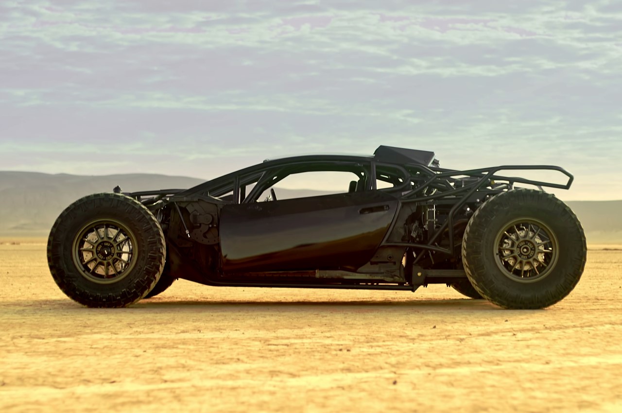 The chassis came from a burnt Huracan that was destined to be scrapped for parts, but B Is For Build decided to resurrect it instead. They fitted it with an LS V8 engine and a manual gearbox, 37-inch rear off-road tires, and Rotiform wheels. Other modifications to the Jumpacan include a long-travel suspension, top-mounted radiator with a roof scoop, a racing-derived fuel cell, a prominent roll cage, and the brakes from a Ford Mustang Shelby GT500, resulting in the Frankenstein’s monster-equivalent of an automobile.