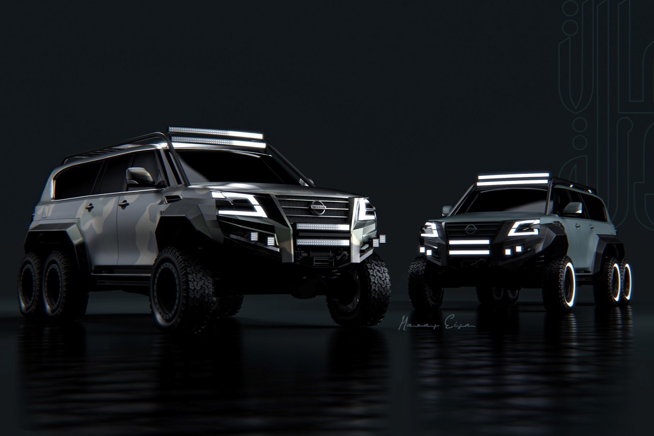 The work of UAE-based automotive designer Nazar Eisa, the Nissan Patrol concept was created for a client based out of Abu Dhabi. With its massive body resting on six wheels, the car clearly isn’t meant for the faint of heart. Rendered in olive green as well as a special camouflage paint-job, the car’s assertive presence is entirely intentional. The name suggests that it’s less of a recreational vehicle and more of a patrol car designed for military, SWAT teams, and other rapid-response security personnel.