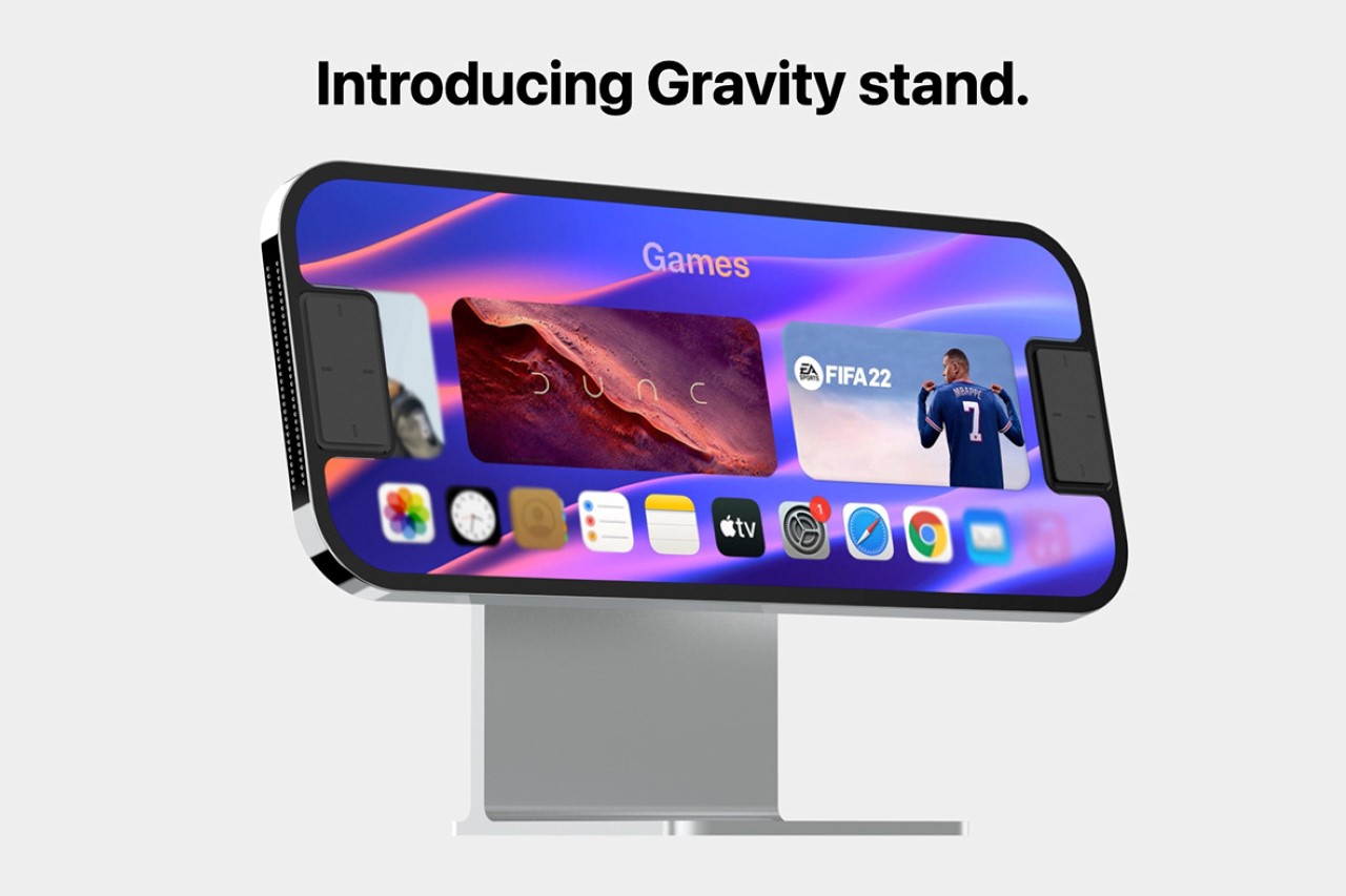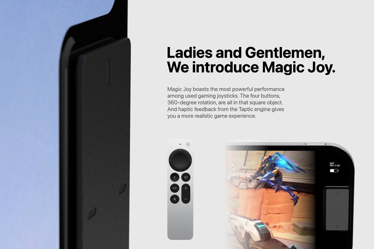 Other noteworthy features of the Arcade Pro are its upgraded Taptic Engine that allows for better haptic gaming, the Magic Joy buttons that mimic the ones seen on the Apple TV remote, 95W MagSafe charging on the back, and a new Game OS, designed specifically to highlight the new gaming experience. The Arcade Pro doesn’t just tap into the Apple Arcade service, it redefines it completely and spins the arcade service into its own standalone service, giving it a dedicated operating system that prioritizes games first, while also offering other features/apps like Netflix, YouTube, Apple TV, Safari, etc. Want to take a break from gaming and just use the Arcade Pro to watch content? There’s a Pro Stand-inspired Gravity Stand that lets you prop your device on it and easily enjoy watching stuff online. The concept doesn’t detail whether the Arcade Pro has cellular services (there isn’t a SIM tray anywhere to be seen), although we could go on a limb and say that it’ll still have Messages, although, with a front-facing camera, Memoji and FaceTime seem out of the picture.