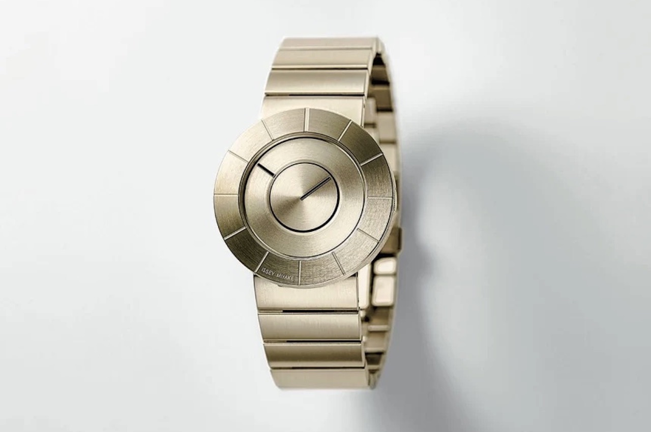 The Issey Miyake TO Watch appears to have been carved out of metal. The newest version is set with a light gold finish, so it looks more elegant. The whole timepiece is in the same finish, from the matching straps to the 38mm case.