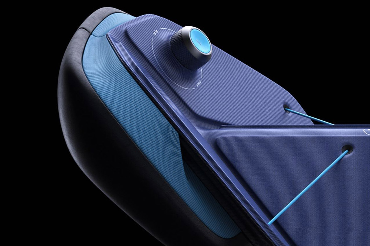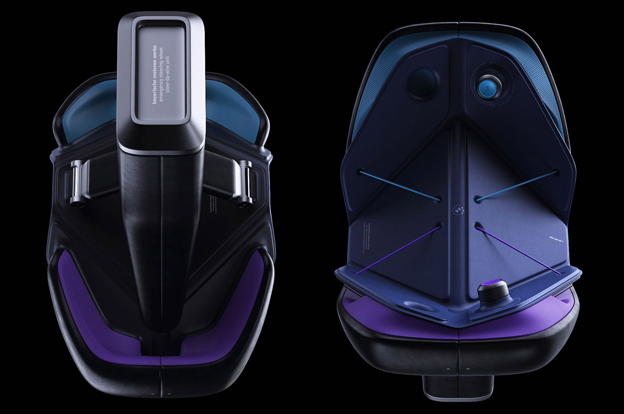 The folding action is supported by the strong fiber threads running along the face of the wheel. Those sci-fi aesthetics of Lars’ proposed design are matched with the cool dual-color fabric inserts. The minimalism of this BMW steering wheel trickles down to the number of buttons available upfront. Only two knobs on each side are available to tweak the driving modes, and everything else is ditched. This hints at the use of this wheel in a BMW vehicle that has trimmed down interiors for complete relaxation. Interiors where simplicity and ambient visual appeal take precedence.