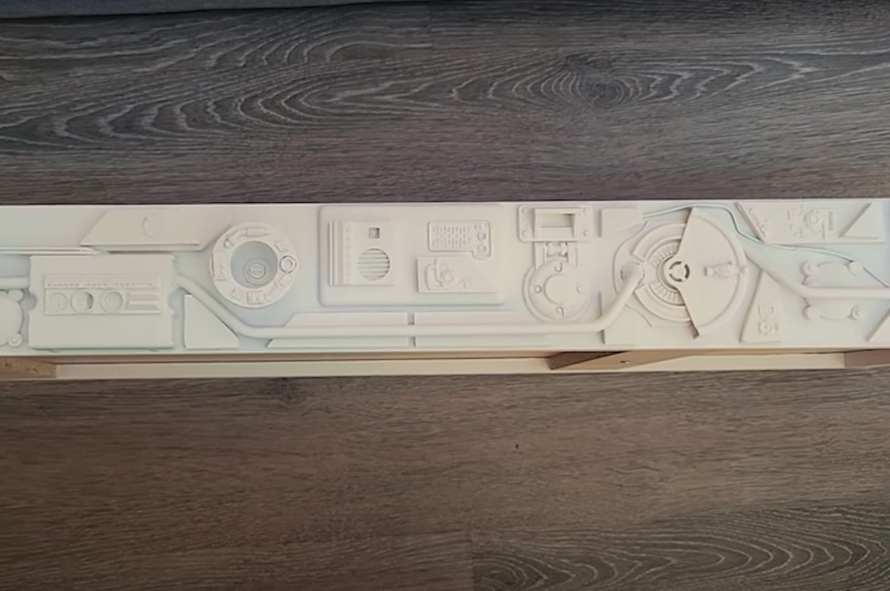 Glen has put a lot of effort into this DIY project – right from the greeblies on the front edge, droid power port and the floating Mandalorian ship to the structuring of the table legs, accompanying chair and the overall weathered look. The power strip concealed in a vertical position can be brought up by turning the mechanism and pushing a button. This is what I find the most intriguing in the cool design worthy of a geeky den.
