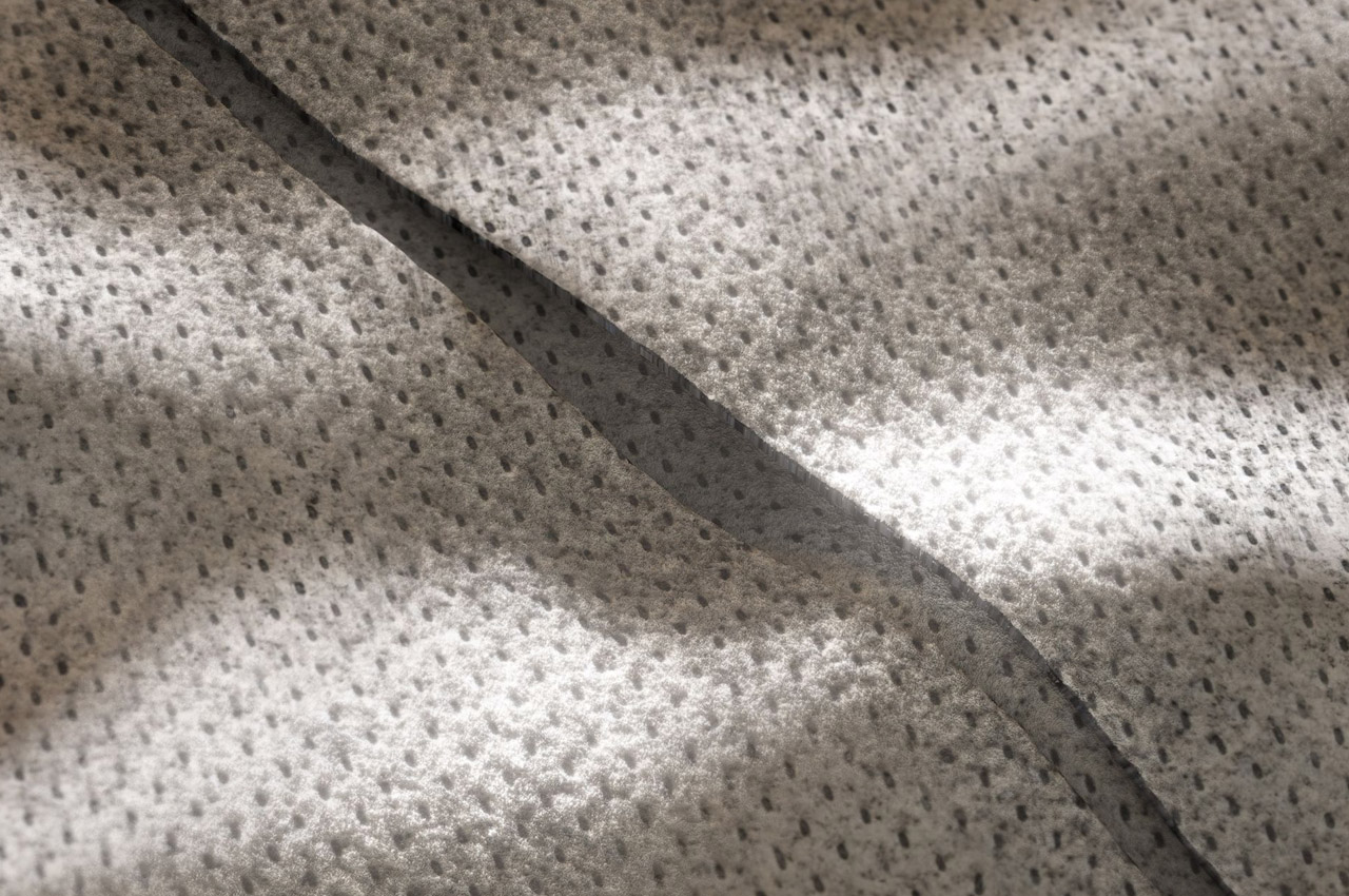 It’s an innovative material fabrication method that reduces carbon footprint by 75 percent. The reductive approach eliminates some levels of the multi-stage production cycle involving spinning, knitting, cutting, sewing etc. Instead, the brand uses punch-needle machines to turn fiber into textile, while being considerate of it not being treated with any dyes.