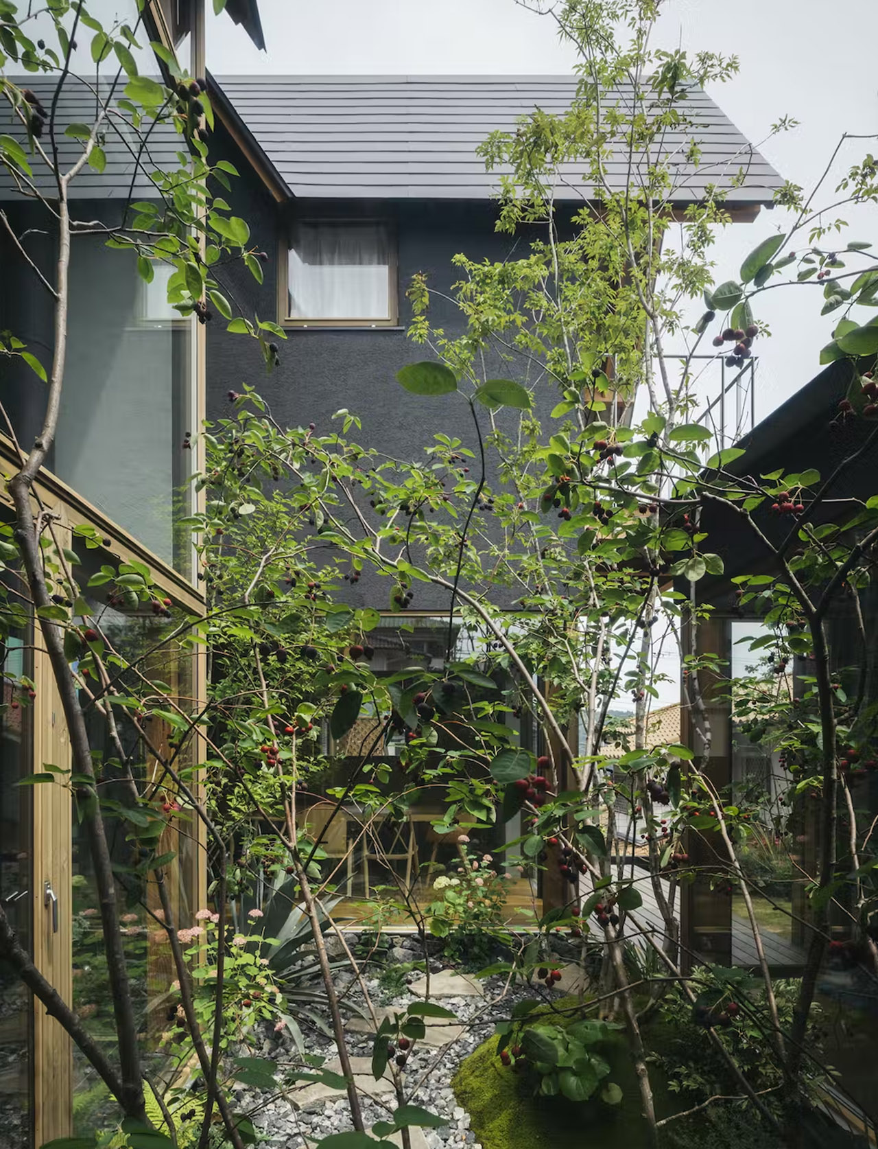 “Each location has a unique facade and leads to other parts of the residence. The garden and the living room are connected in the interweaving of each other and are connected to the outside world.”