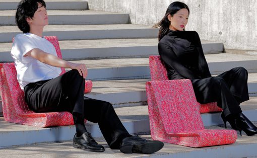 Remix Maison is a collaboration between designer Irina Flore and Native Shoes using the latter’s material called Native Shoes Remix. This proprietary material is made from repurposed footwear, specifically using EVA (Ethylene Vinyl Acetate) and rubber. The shoes that are no longer in use are cleaned and then ground into a new kind of material and then used for other purposes. The sculptural structures also use metal for its frame. For this particular collection, they have created a piece of furniture that also looks like a piece of art.