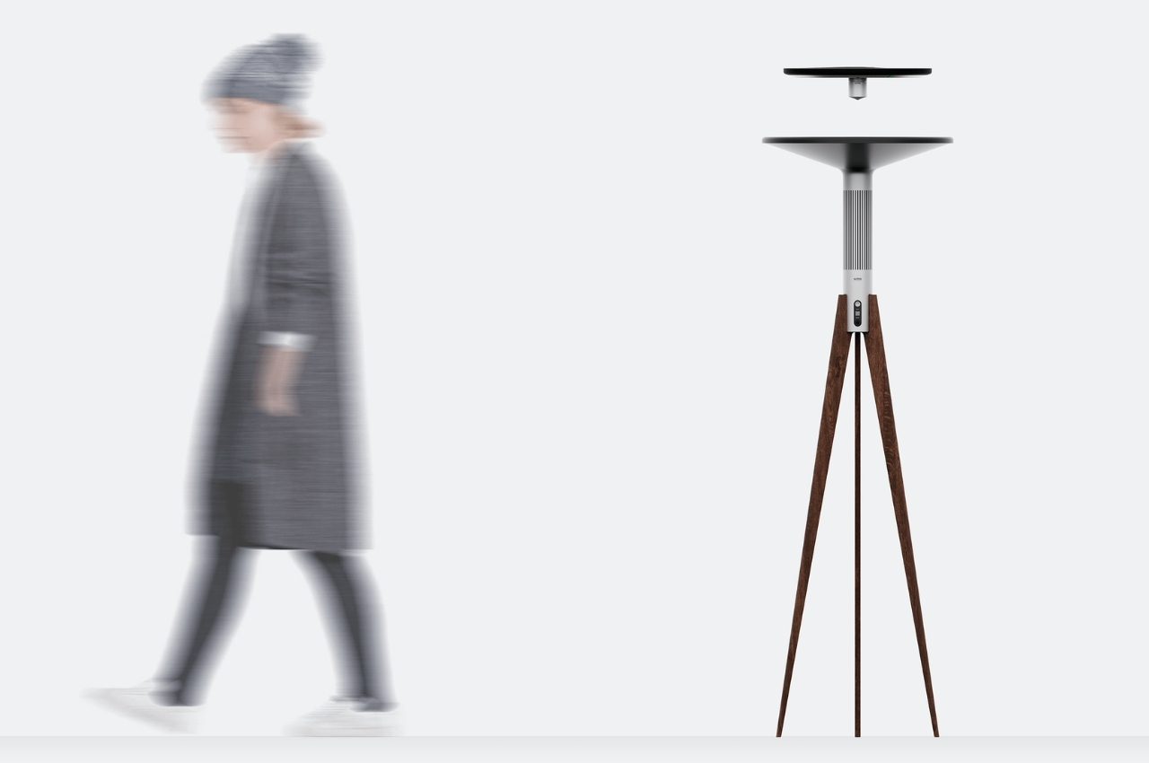 In case you have a phobia of blades hitting people, the device has a protective “diaphragm” that protects people from the blades but still lets it perform its function. The system looks like a mini satellite dish stand while the mobile drone looks like your typical drone. The body is made from aluminum while the legs are wooden. The rotors have a coaxial arrangement which makes it ideal for when the drone is in the station and it can perform its fan function. It can also serve as a floor lamp since there is an LED backlight on the edges.