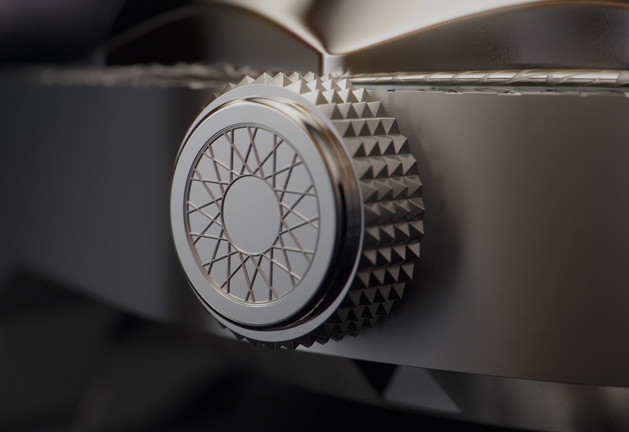 There is a capsule on the side of the case (at 9 o’clock). This contains a piece of the leather jacket he wore when he received the gold record. This hidden treasure gives an unequivocal emotional dimension.