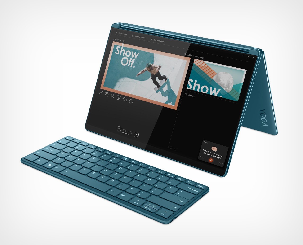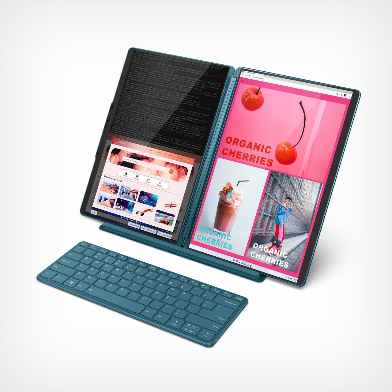 As impressive as the dual-display setup is, the YogaBook 9i is also made to be a tough, capable machine. It’s built on the Intel Evo platform and runs Windows 11, offering unique dual-screen touch-sensitive functionality that may just be the first ever from a non-Microsoft company. The YogaBook 9i has a 13th Gen Intel Core i7 chip on the inside, with 16GB of RAM and up to 1TB of SSD storage. The laptop’s 360° rotating hinge also doubles up as a soundbar with Bowers & Wilkins audio drivers for a rich, immersive audio experience. Each YogaBook comes with a detachable Bluetooth keyboard and a companion stylus. The hybrid laptop will be available in a rich, eye-catching Tidal Teal with a starting price of $2099.99, and will ship in eco-conscious packaging featuring cushion materials, a gift box, and an outer box all made from 100% recycled paper starting June 2023.
