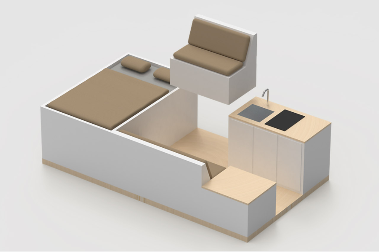 The interior is insulated while the rooftop 1,500W solar panels power the remotely controlled electronics and appliances. Based on a modular layout, the travel trailer can be customized to suit each occupant’s requirement, fitting piece by piece according to need.