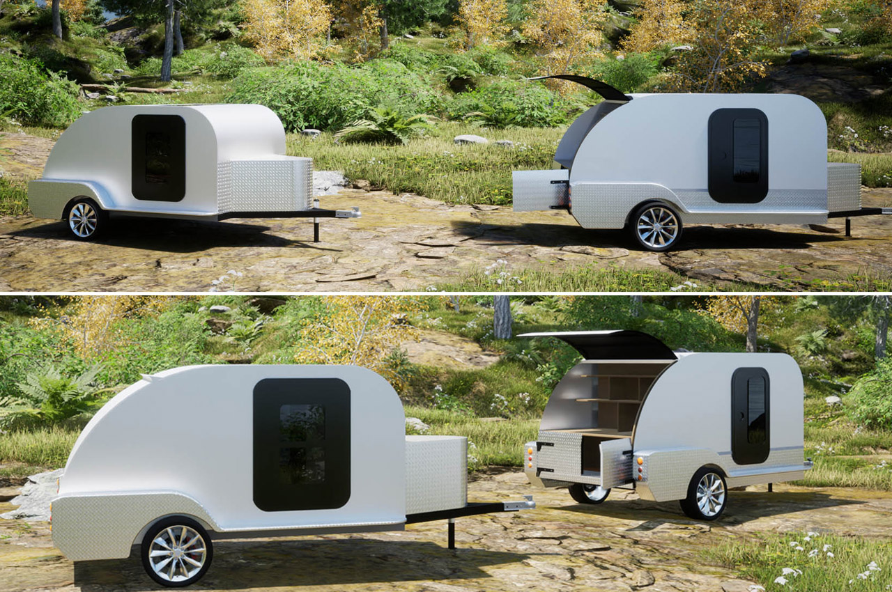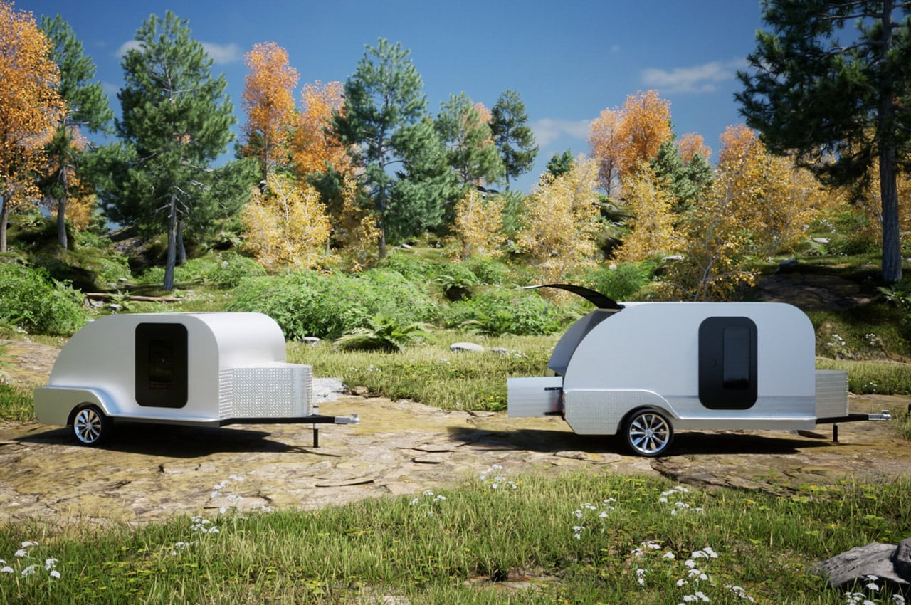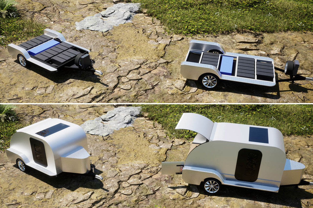 Designed in two variants, essential for those looking to extend camping trips in the outdoors, the teardrop trailers provide additional off-grid energy to power equipment and devices on board, or juice up your electric vehicle on the journey back home.