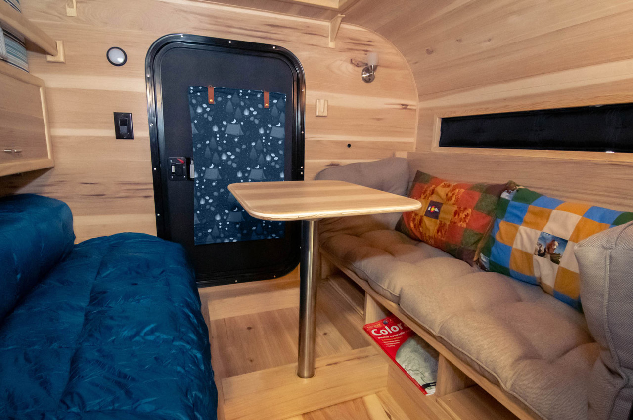 The interior of the Colorado Teardrop’s EC-2 and EC-4 are free from plastic in the walls, cabinetry, and shelving, however, have been made warm and comfortable for the inhabitants. For this, the teardrops feature maple or hardwood laminates and have insulated doors with sliding windows that open up the interiors to the great outdoors, while keeping the camping trailer tightly sealed otherwise.